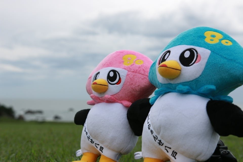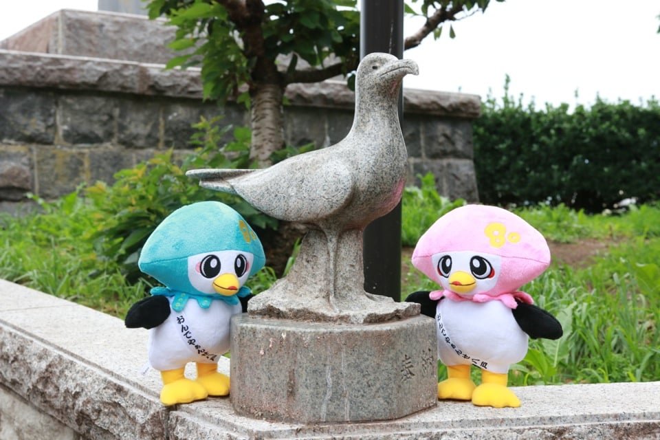 で、ただ撮ってもアレなので、八戸市のマスコットキャラクター「いかずきんズ」のぬいぐるみの使用許可をいただきまして、いかずきんズが八戸の名所を訪ねているようにしました。