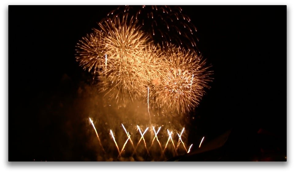 スターマインから次のスターマインまで間があるので、その間に「直前の花火のリプレイ映像」を挿入しました。